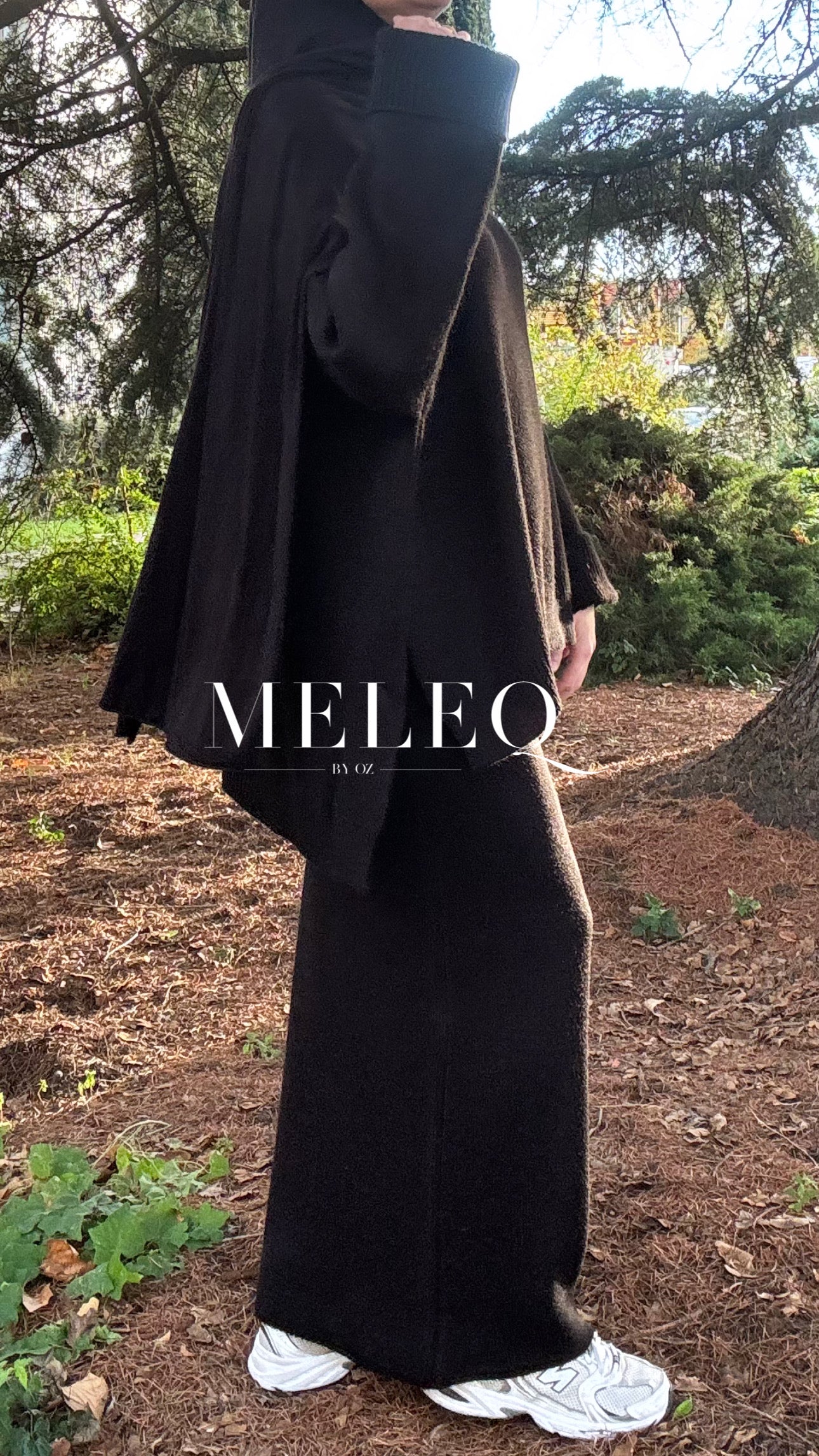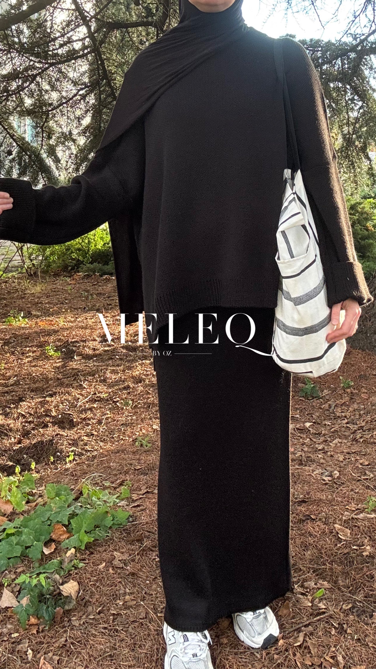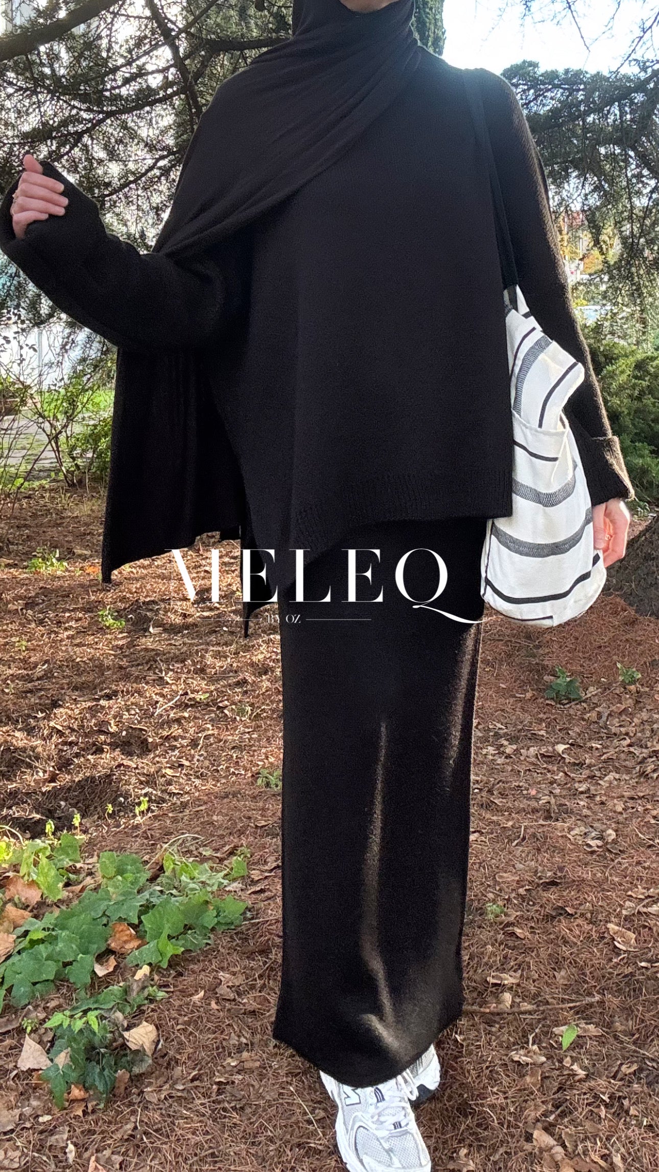 Composé d'un pull oversize fendu sur les cotés et d'une jupe longue fluide, il offre une allure chic et décontractée à la fois.