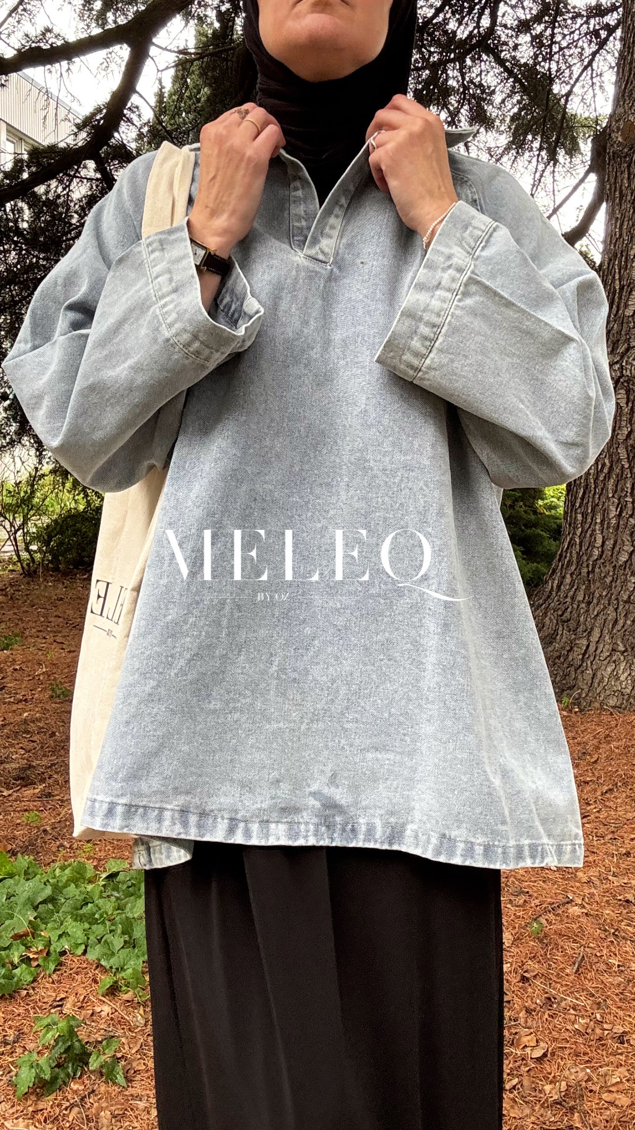 Tunique en jean effet délavé au style décontracté et tendance. Sa coupe oversize et son col ouvert apportent une touche moderne et confortable. Idéale pour vos journées actives ou vos moments de détente.